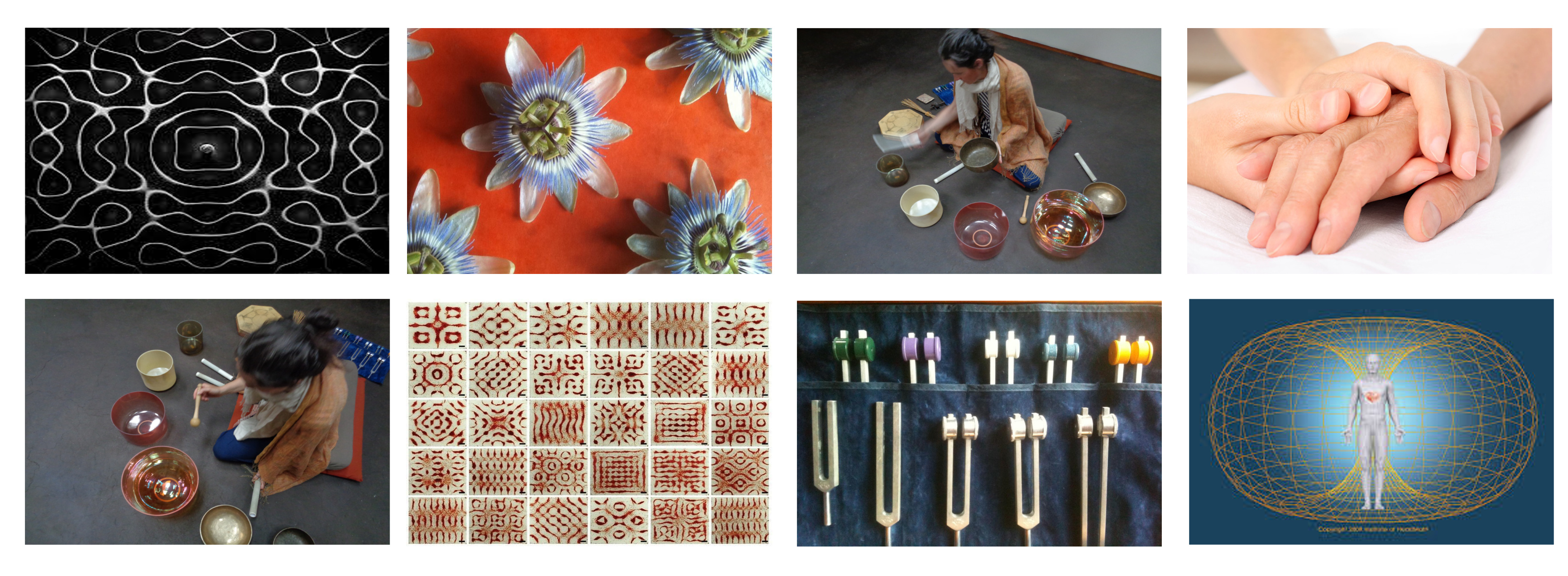 Working from the basic premise of Traditional Chinese Medicine; that disease arises as a result of blockages in the energetic body, sound healing works by the application of sound, via the voice, tuning forks, singing bowls, gongs, percussion, etc. to shift these energy blocks and remind the mindbodyspirit of its naturally harmonious flow. Tuning forks have a coherent wave form that works a bit like a comb, finding the tangles and gently easing them out, the metal singing bowls and percussive instruments create a lot of dissonant, chaotic wave forms that act a bit more like, I don’t know, a scrubbing brush?? that clears out the crud leaving you feeling more free, fluid and essential.